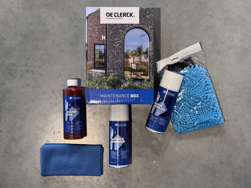 Om de levensduur en uitstraling van jouw ramen en deuren te garanderen, bieden wij onze eigen onderhoudsbox aan. Deze box bevat zorgvuldig geselecteerde producten van hoge kwaliteit waarmee je jouw profieloppervlakken, glas en bewegende onderdelen optimaal kunt verzorgen.