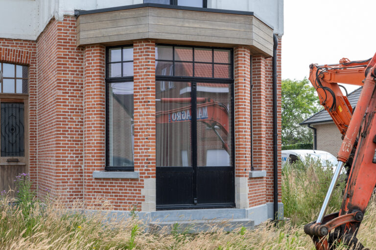 Voor een stijlvolle renovatie in landelijke stijl mocht De Clerck Ramen en Deuren zijn vakmanschap tonen met een totaaloplossing in PVC. De volledige woning werd uitgerust met grafietzwarte ramen en deuren (kleur 3043), wat zorgt voor een uniform geheel. De toevoeging van kruishouten op het glas geeft de ramen een charmante, klassieke uitstraling die perfect aansluit bij het karakter van de villa.